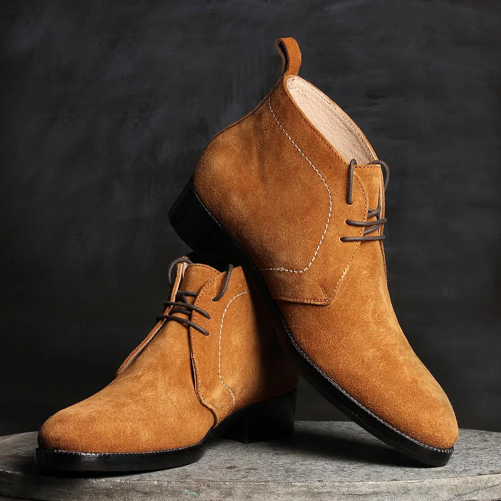 - Try sand chukkas with olive chinos and a navy knit for effortless smart-casual.