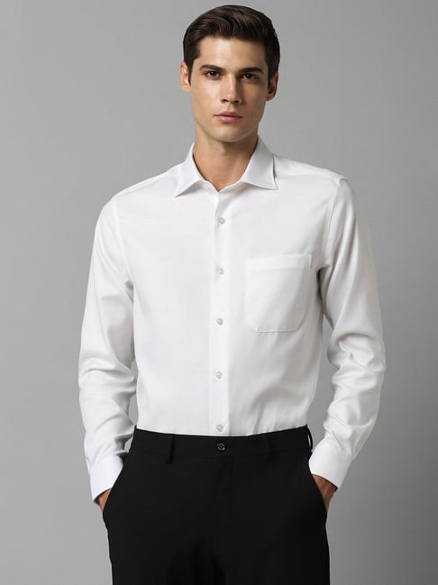 Louis Philippe Permapress White Cotton Regular Fit Texture Shirt