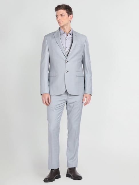Arrow Light Grey Regular Fit Checks Three Piece Suit