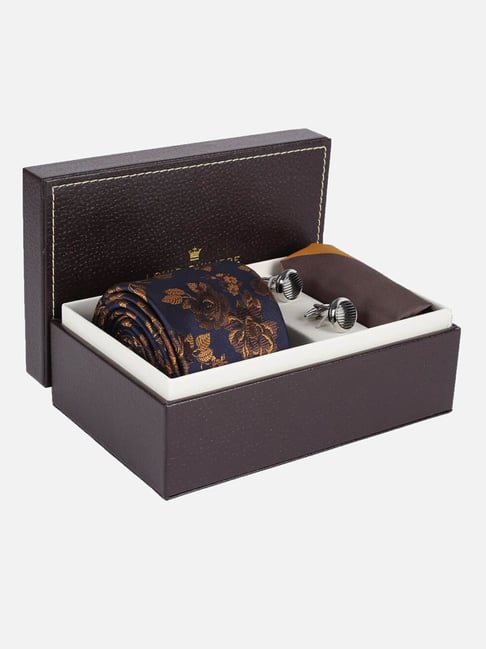Louis Philippe Blue Alloy Embroidered Tie, Pocket Square & Cufflink