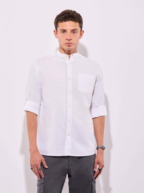 Great for semi-formals or dressy casual events. The band-collar shirt adds a dash of culture while staying sleek.