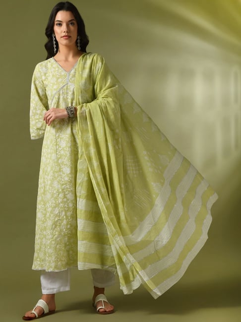Pomcha Jaipur Saadgi Yellow Mirror Work Anarkali Set Anarkali Kurta With Pant And Dupatta