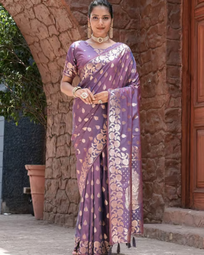Craft Highlight: Banarasi silk sarees stitched with zari, with temple borders
